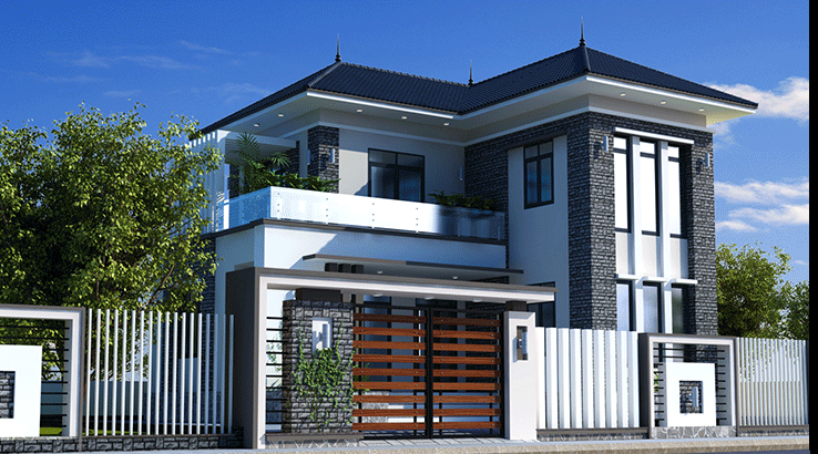 Mẫu thiết kế trên là một ví dụ. Một ngôi nhà 2 tầng theo phong cách hiên đại nhưng không quá cầu kỳ và phức tạp. Loại bỏ bớt các khối, chi tiết không cần thiết để tiết kiệm chi phí cho gia chủ. Các khối tường thiết kế vuông vắn với các đường nét dứt khoát. Tạo sự mạnh mẽ và kiên cố cho công trình.